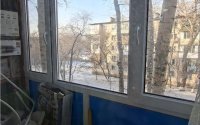 Балкон застеклен пластиковым стеклопакетом.