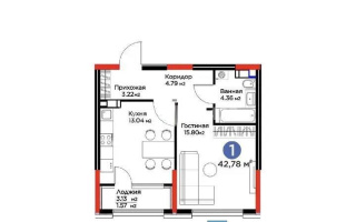 Продается 1-комнатная квартира, не угловая, пластиковые окна.