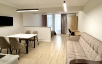 ЖК «Nomad», в целом это 1.5 комнатная квартира, полностью меблирована, бытовая техника, кондиционер, телевизор, скоростной интернет, кабельное ТВ, выгодное местоположение, в центре города, развитая инфраструктура: рядом школы, магазины, банк, кафе, сквер, оптовый рынок, магазины Sulpak и Magnum