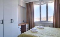 При входе в квартиру вы можете оставить верхнюю одежду и посмотреться в зеркало. В спальне все продумано для вашего комфорта: кровать с ортопедическим матрасом и чистым, свежим постельным бельем для вашего безупречного сна. Напротив Android Tv находится диван, где вы можете посмотреть ролики. В квартире прохладно и чисто для настоящих ценителей порядка. Кухня оборудована как техникой, так и качественной посудой. Ванная: здесь для каждого гостя приготовлены махровые полотенца для тела и рук. Не везите с собой зубную щетку, тут даже она есть!