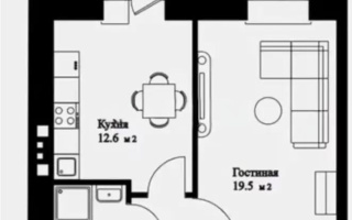 Планировка позволяет легко перепланировать пространство в евро-двушку: выделить отдельную спальню и кухню-гостиную, сделав жильё более функциональным и современным.