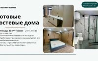 Жилой фонд: 3 современных гостевых дома (по 30 м²) с террасами. Полная комплектация мебелью и техникой.