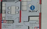 Общая площадь составляет 35,33 кв. м. Квартира расположена на 3 этаже современного дома. Предчистовая отделка даёт возможность выполнить ремонт по собственному проекту и реализовать индивидуальный дизайн.