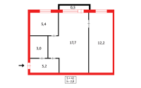 🔑 Площадь — 44,8 м² Площадь кухни - 5,7 м²