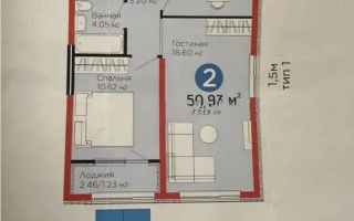 Продаётся 2-комнатная квартира 43, 16 м² в предчистовой отделке.