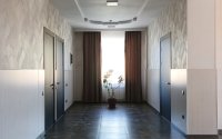Керамогранит, гранитная лестница (полированный гранит), МДФ-панели, дорогая сантехника.