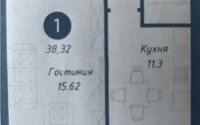 Площадь — 38,3 кв.м, кухня — 11,3 кв.м. 2 этаж из 9. Предчистовая отделка.