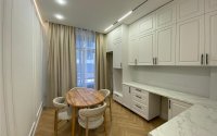 -Выполнен свежий дизайнерский ремонт под ключ, использованы дорогие материалы, на полу ламинат высокого класса, теплые электрические полы в санузлах и коридоре.