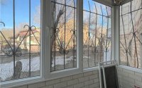 Балкон- есть застекленный пластиком, а также установлены дополнительно кованные решетки для безопасности.