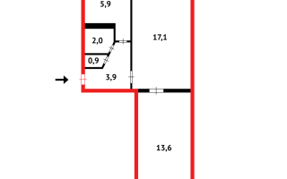 Общая площадь — 57,1 кв.м, кухня — 5,9 кв.м.