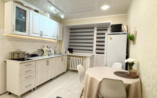 О квартире: не угловая, очень тёплая, кухня-студия с отдельной спальней — удобно для пары или семьи с ребёнком, недавно выполнен качественный ремонт, пластиковые окна, межкомнатные двери, натяжные потолки, новая сантехника, застеклённый балкон с встроенными шкафами, вся электропроводка новая — медные кабели, 24 розетки, щитовая, реле напряжения, счётчики установлены, есть небольшая кладовка, толстые стены — отличная шумоизоляция.