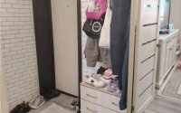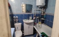 Увеличили кухню - перепланировка- кухня теперь большая, просторная. Санузел совмещенный.