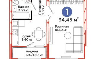 Уютная и светлая 1-комнатная квартира площадью 32 м² в новом доме 2024 года постройки, современная планировка.