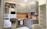 Отдельное преимущество — наличие гардеробной, которая позволяет грамотно организовать хранение вещей. Кухня просторная, удобная для жизни и семейных встреч.