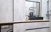 Планировка удобная: все комнаты изолированные, окна выходят на обе стороны, что обеспечивает хорошее естественное освещение и проветривание. Санузел раздельный, облицован кафелем. В ванной комнате продумано размещение техники — стиральная и сушильная машины аккуратно встроены в шкаф, что выглядит эстетично и экономит пространство.