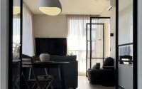 Интерьер дополняют перегородки для зонирования пространства и аккуратные потолки со скрытым освещением.
