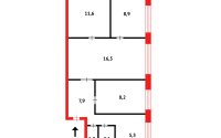 Смежно-раздельная планировка комнат общей площадью - 61 м².