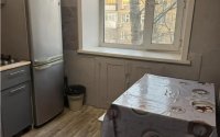 На полу линолеум, санузел раздельный, без кафеля. На кухне остаётся небольшой кухонный гарнитур, остальная квартира без мебели.
