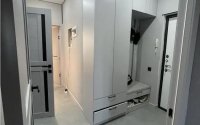 Выполнен дизайнерский ремонт в современных серо-золотых и нефритовых тонах.