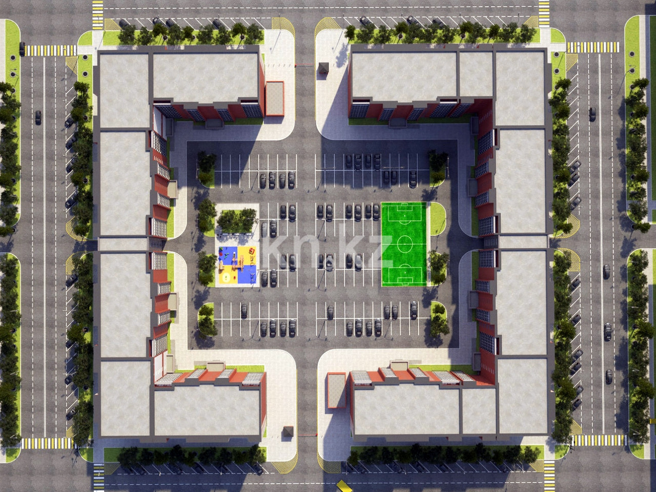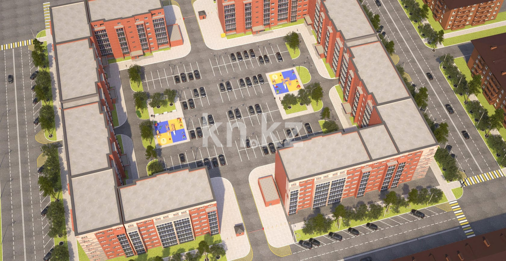 На территории двора предусмотрена автомобильная парковка для жильцов комплекса, а с наружной стороны располагаются места для гостевого транспорта.