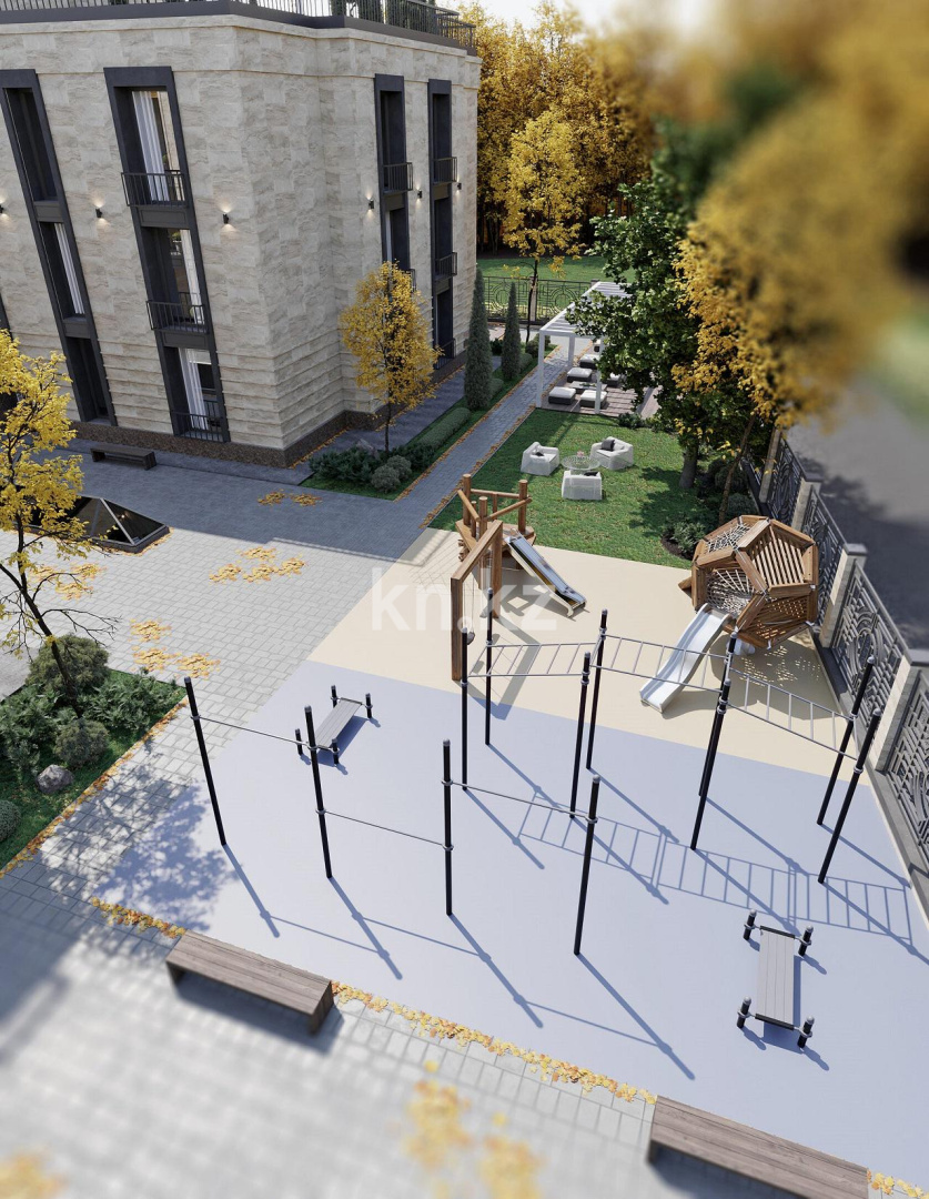 детскую площадку со специальным покрытием, современными горками и качелями;
