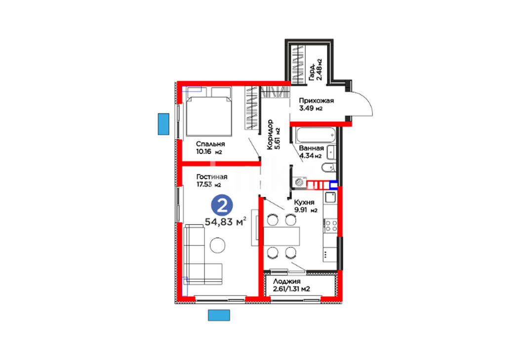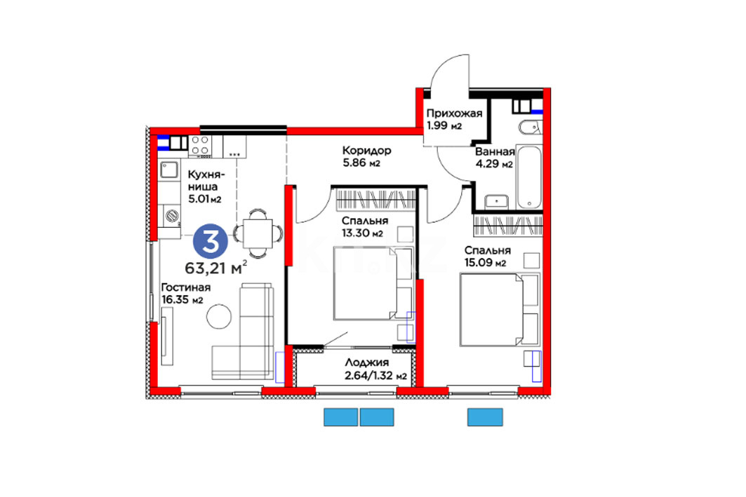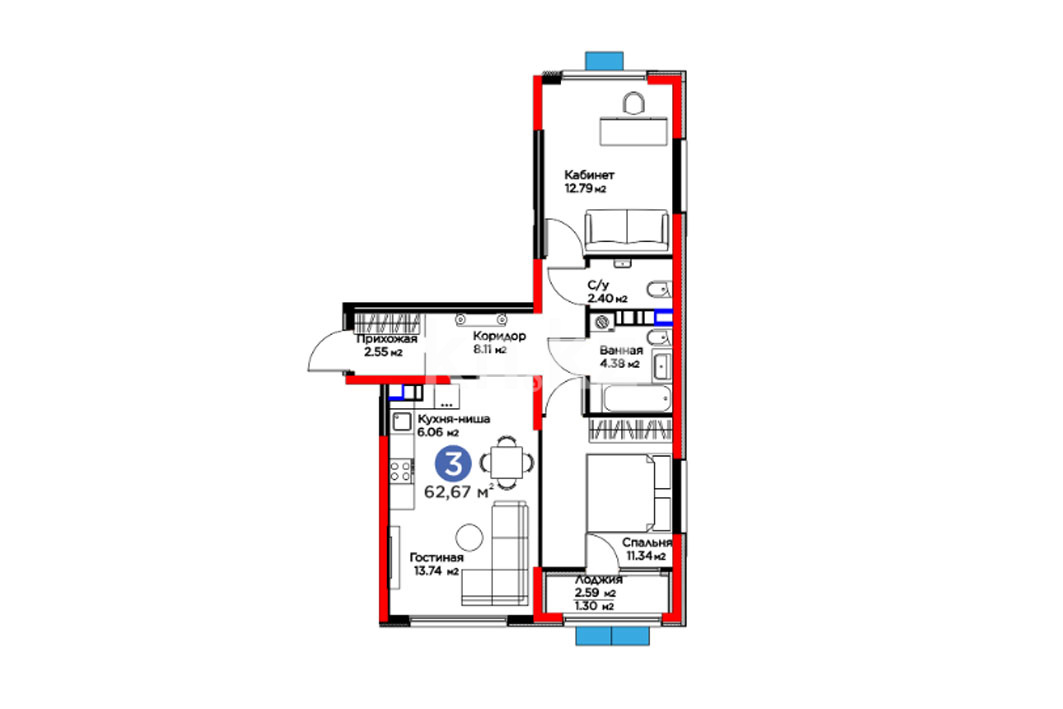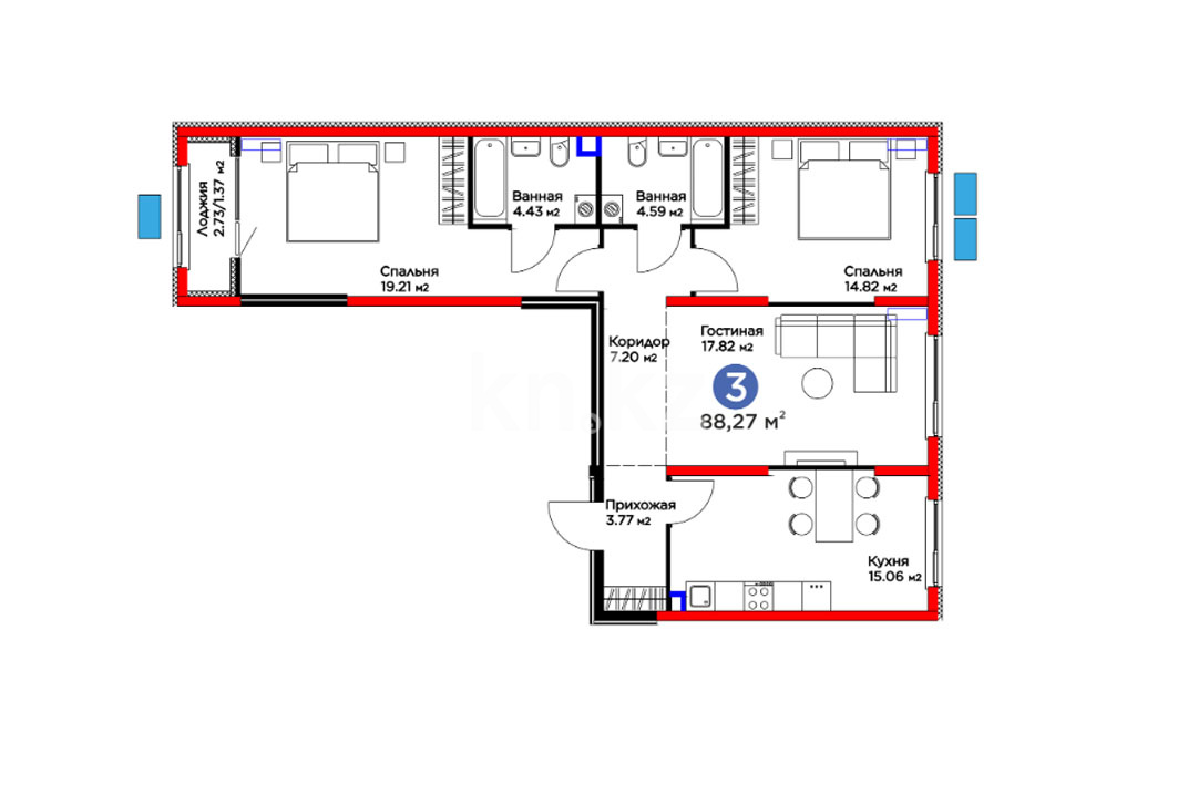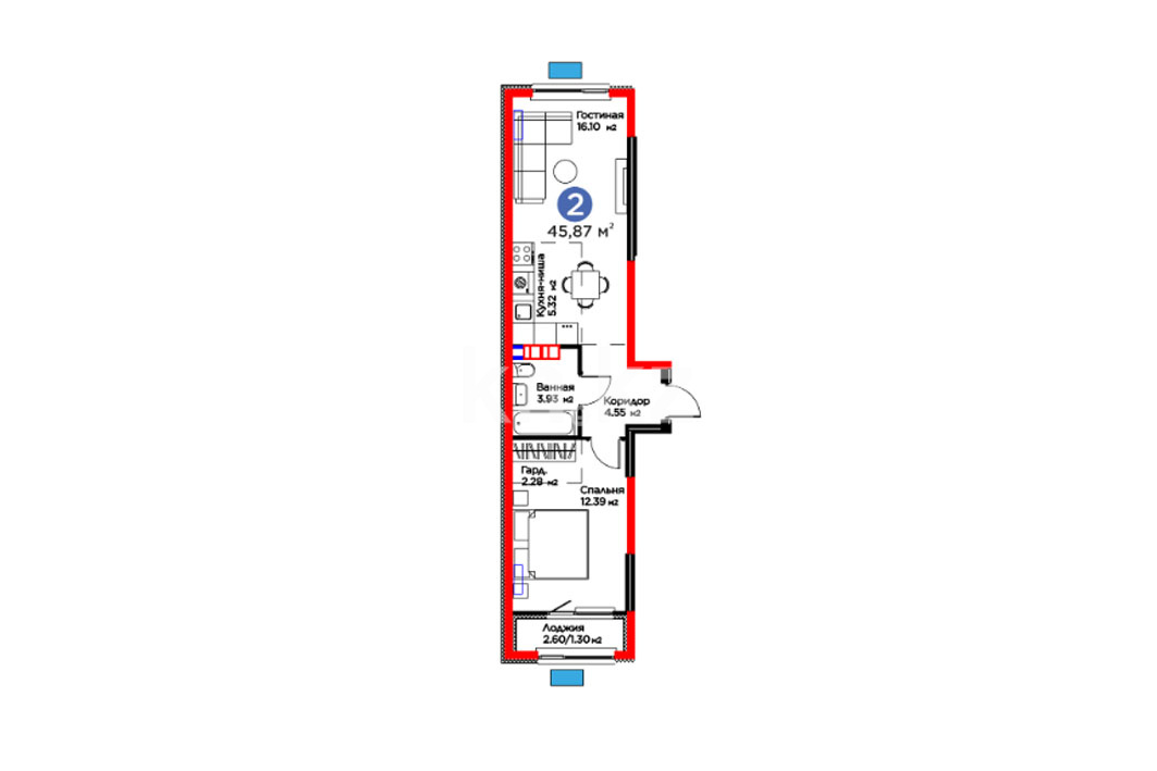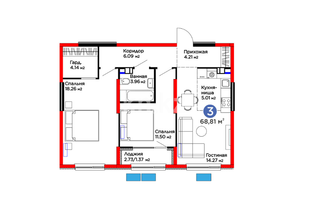 Высота потолков: 2.7 м