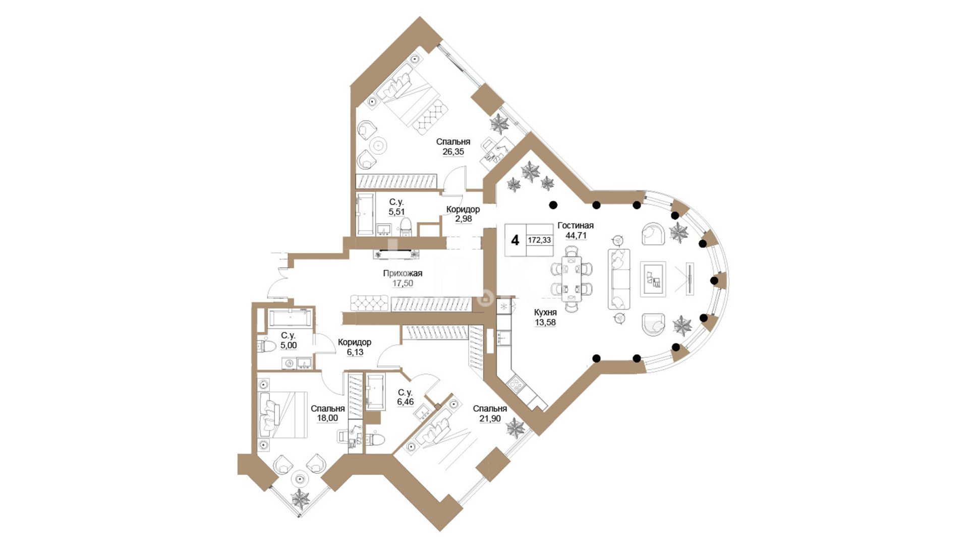 SPA-зона, с хаммамом, сауной и массажным кабинетом;