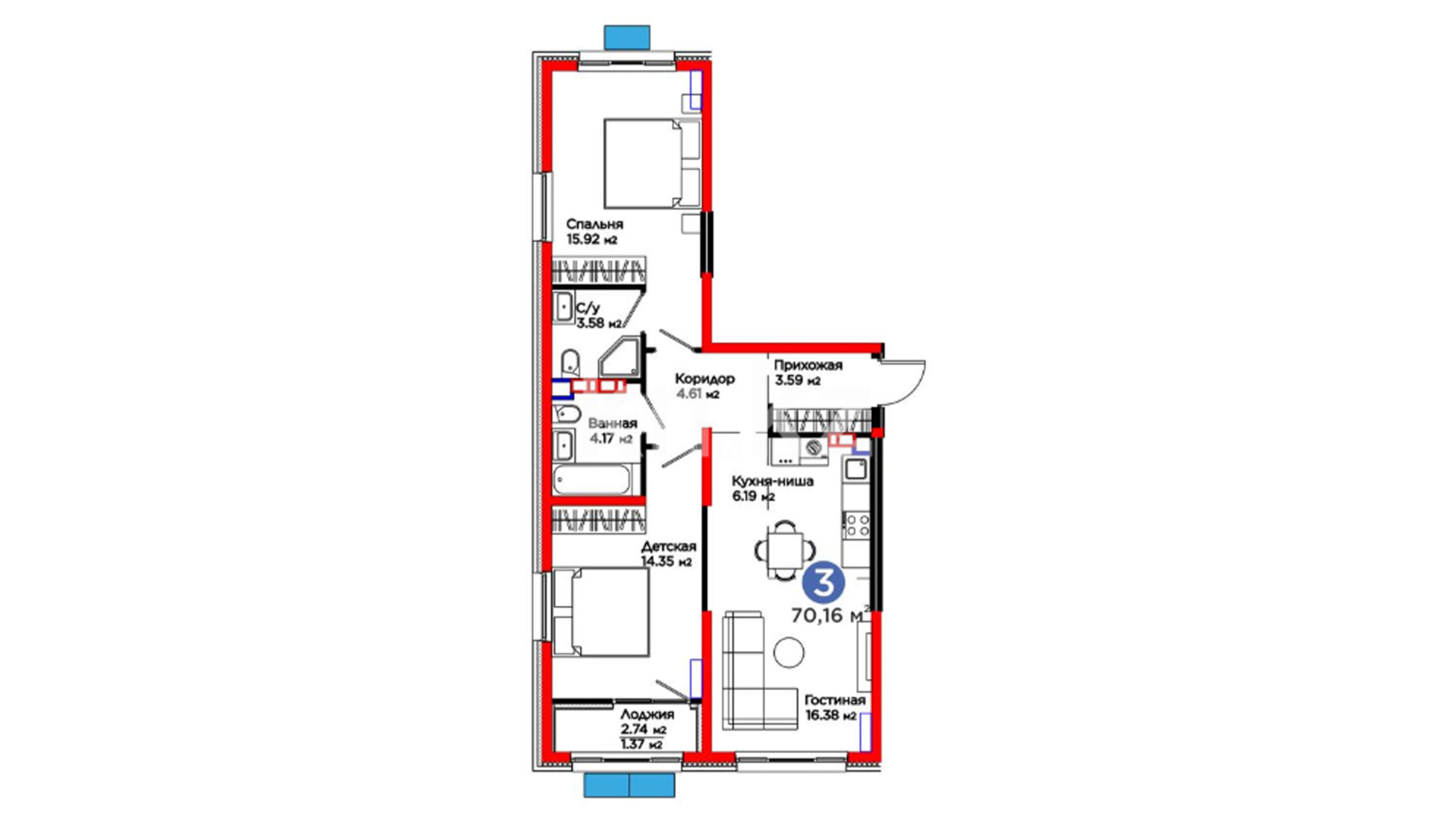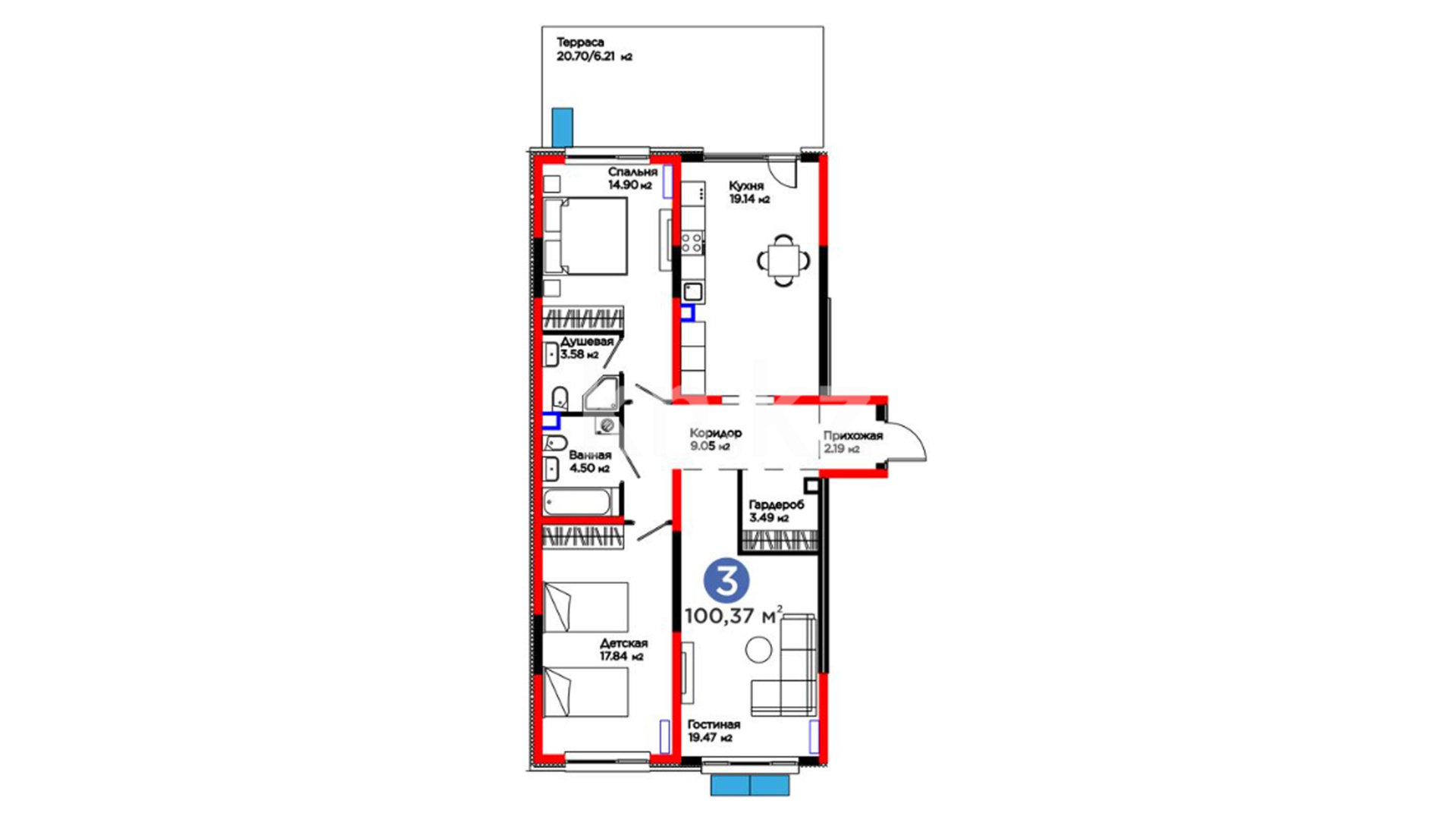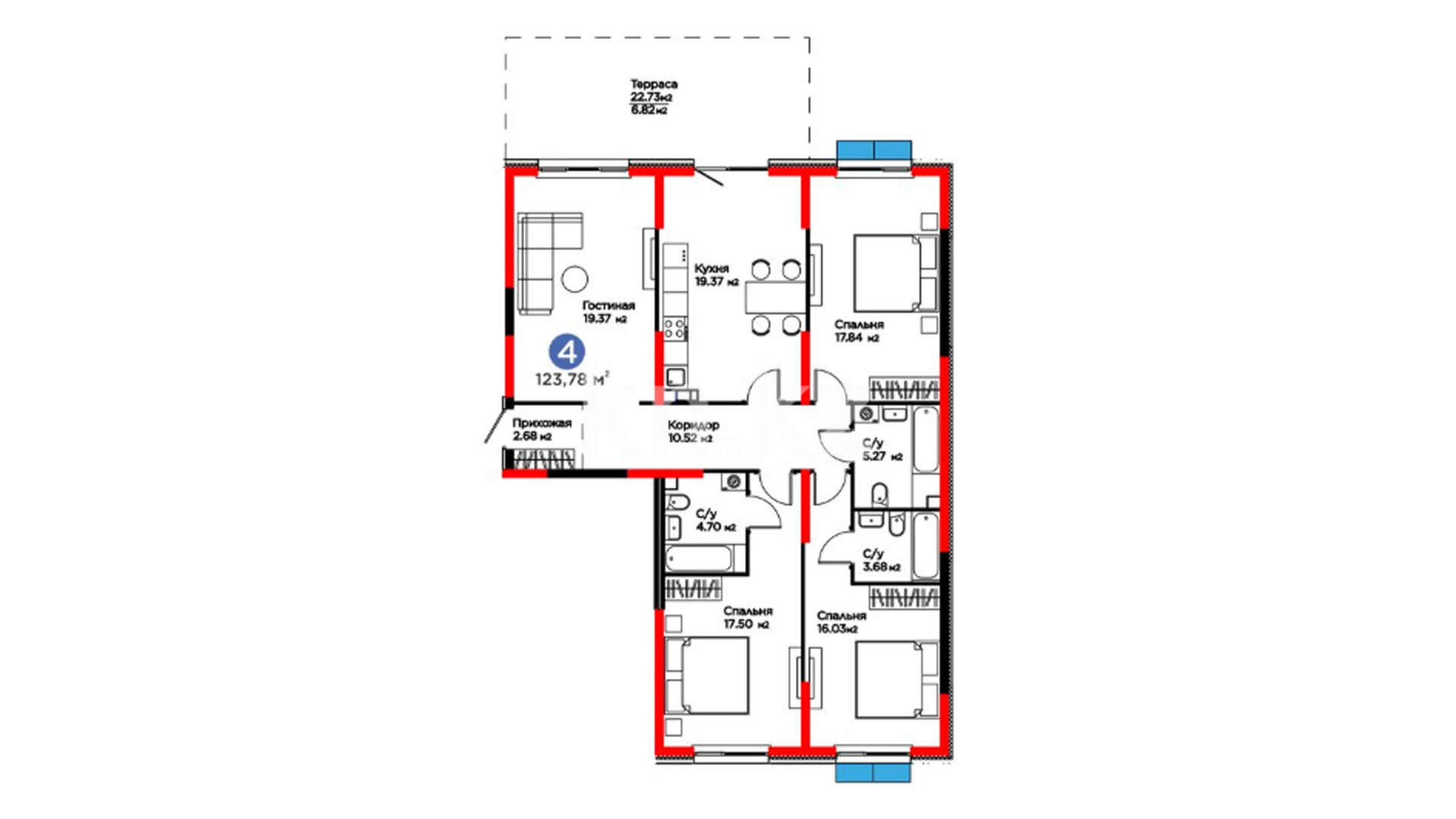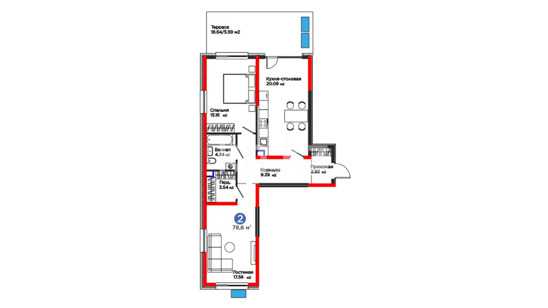 В комплексе представлено ограниченное количество уникальных квартир с собственными просторными террасами, где можно наслаждаться свежим воздухом и прекрасными видами.
