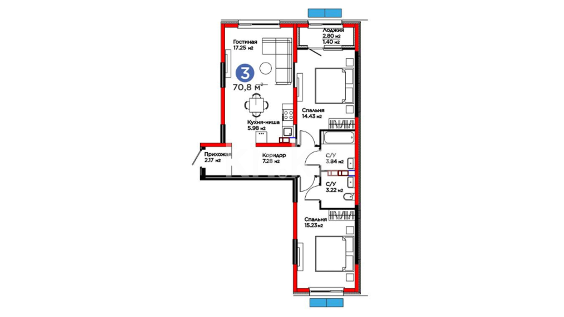 Высота потолков: 3 м