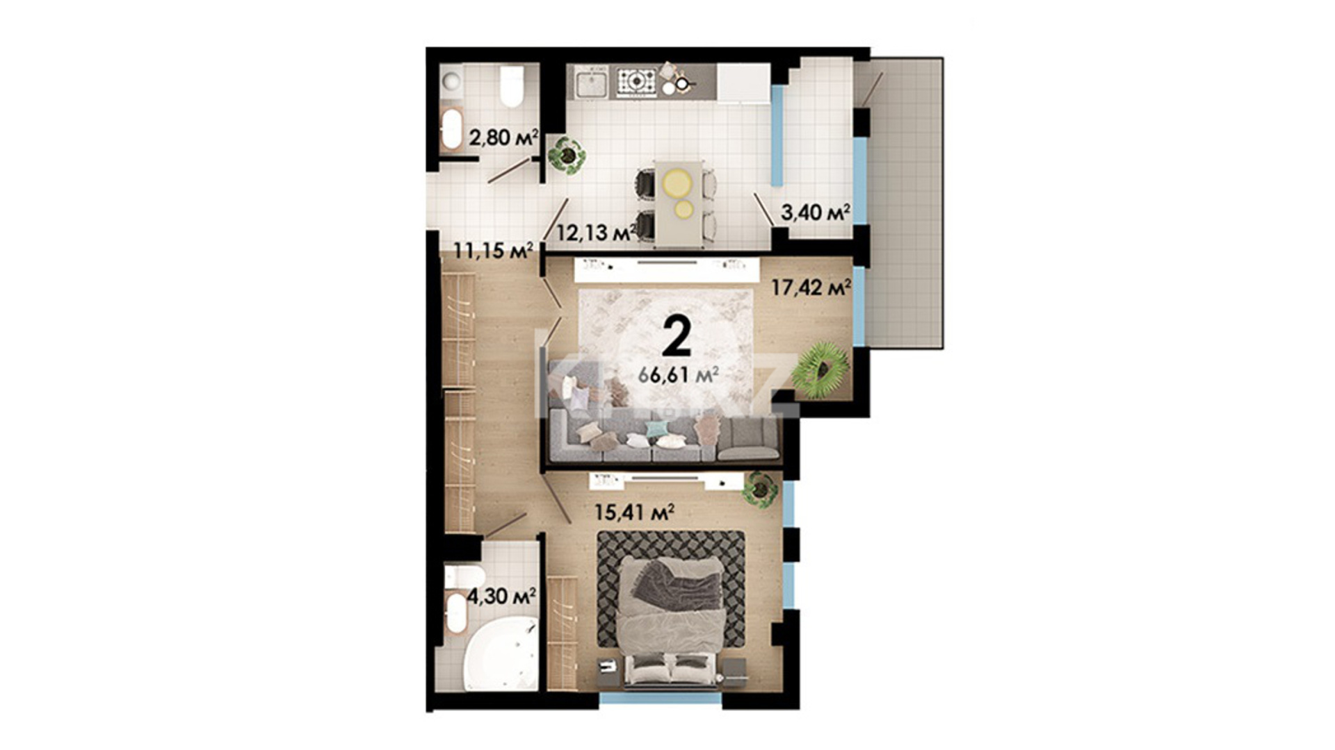 В клубном доме Eco Park всего 3 этажа и 27 квартир. В комплексе представлены 2-, 3- и 4-комнатные квартиры площадью от 65 до 175 кв. метров. На крыше - открытая терраса общего пользования, на которой оборудованы: