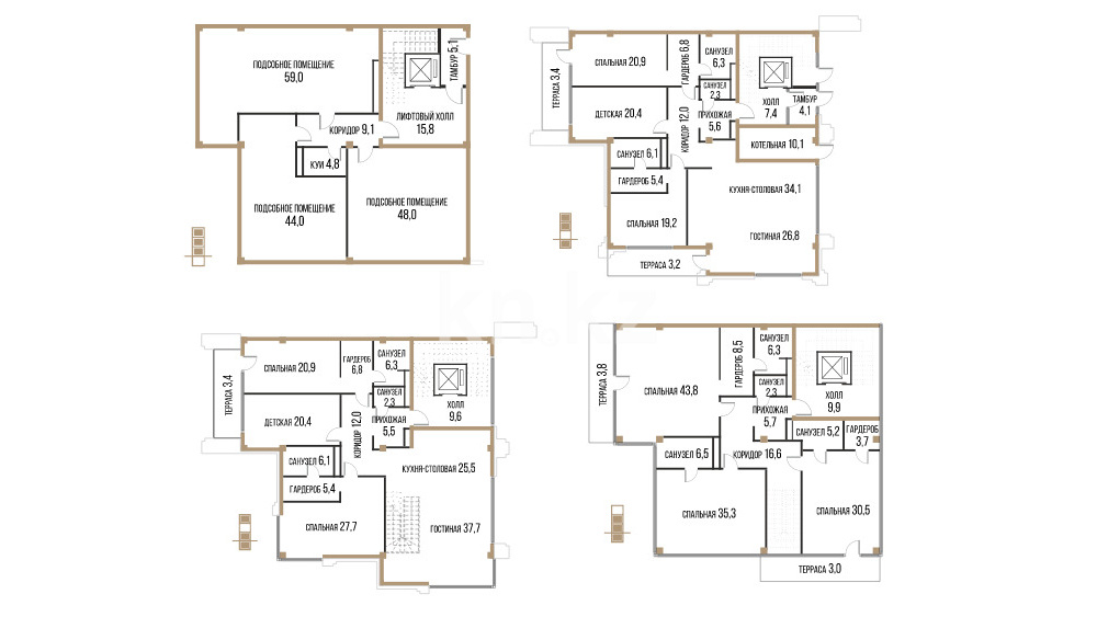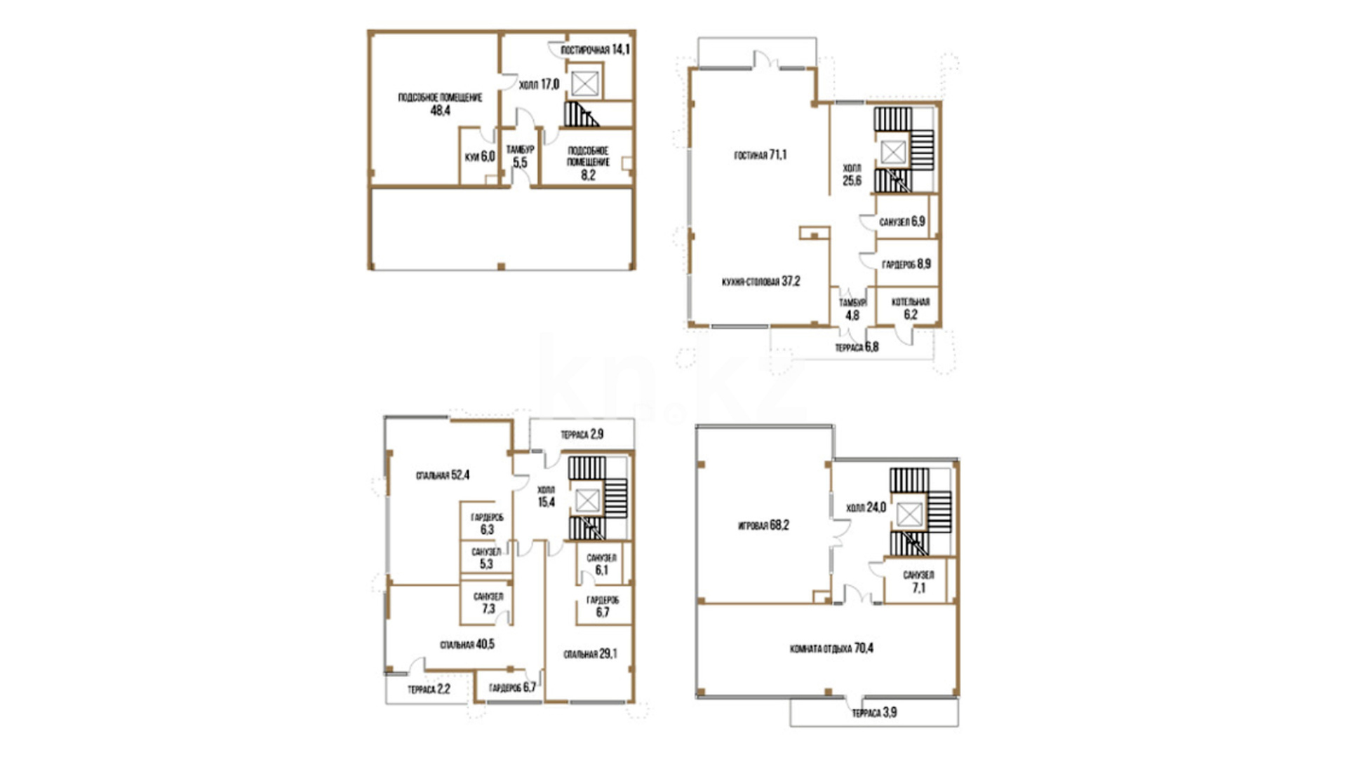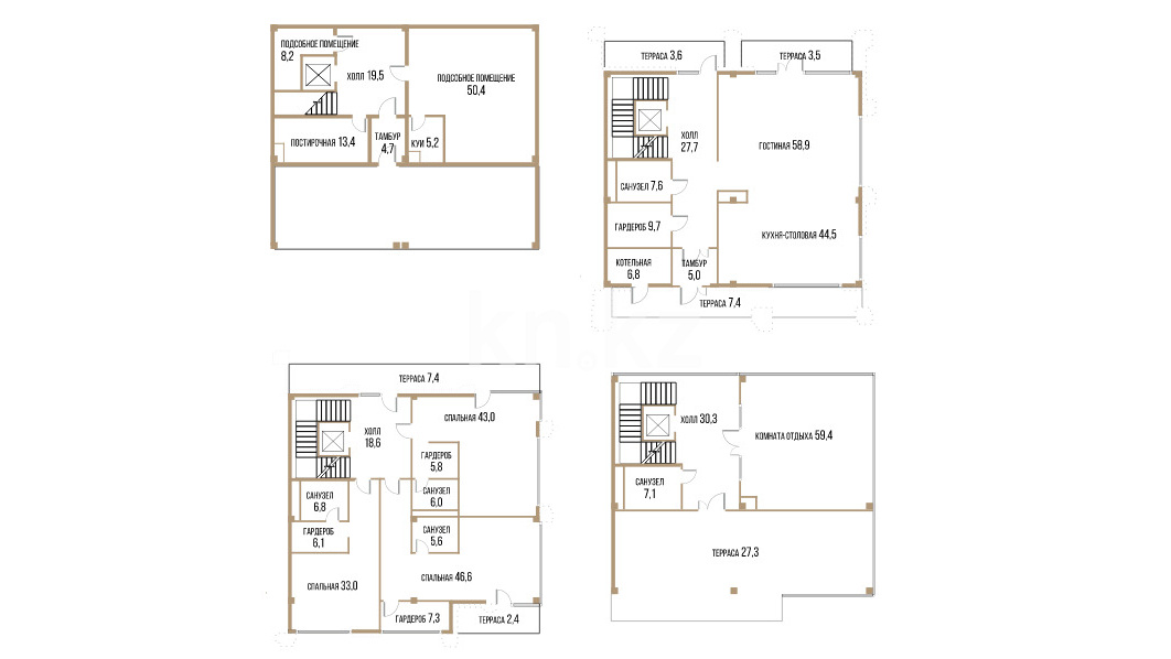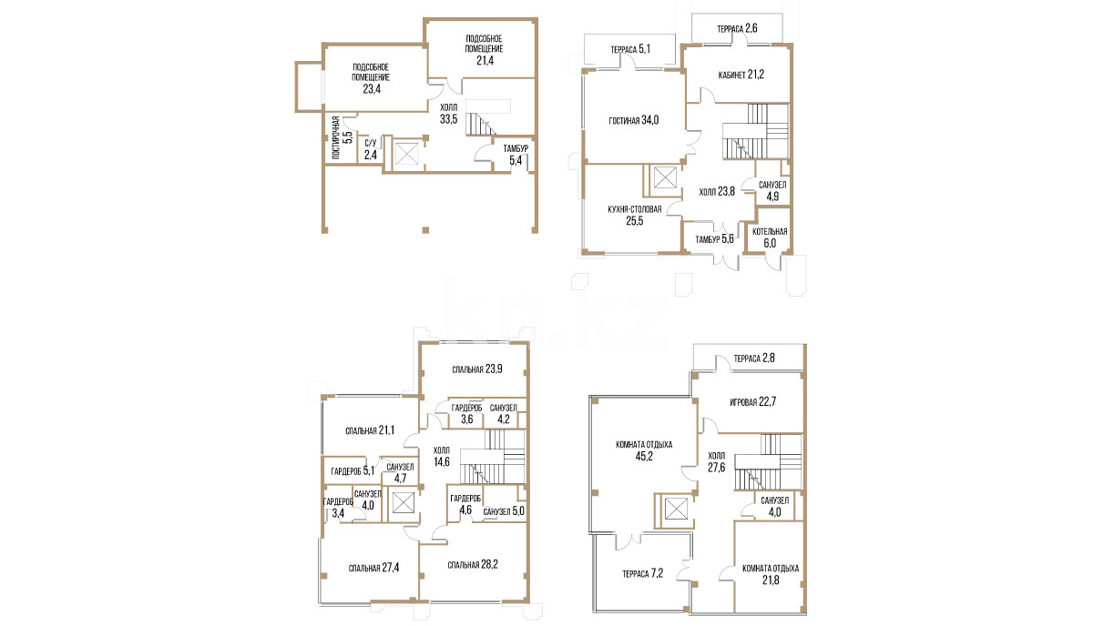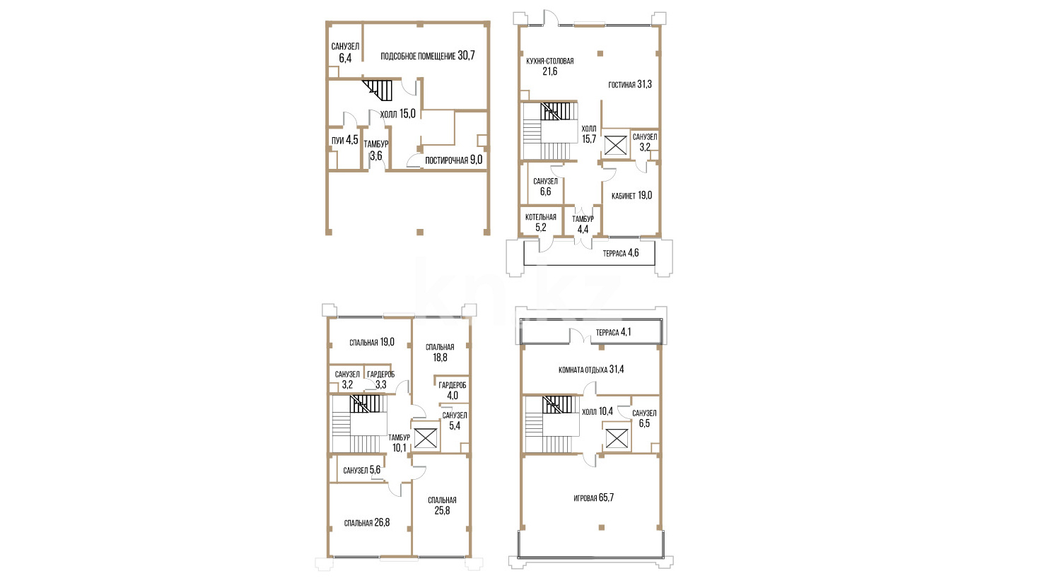 Каждый таунхаус представляет собой просторное помещение площадью от 294 кв. метров, с гардеробными, несколькими санузлами, подсобными комнатами, котельной, кухней-столовой и уютной гостиной. В зависимости от планировки, предусмотрено от 5 до 11 спален, а также минимум одна терраса площадью от 5 кв. м, что идеально подходит для отдыха на свежем воздухе.