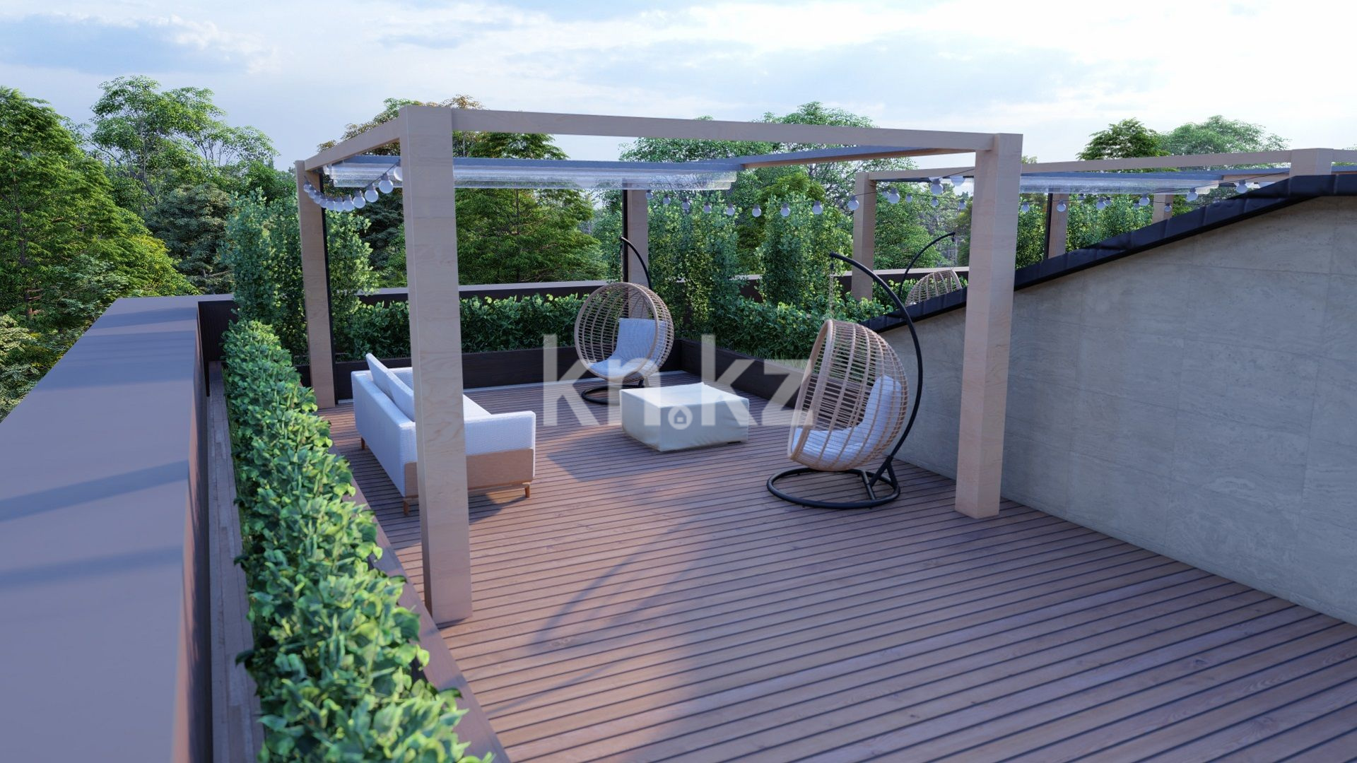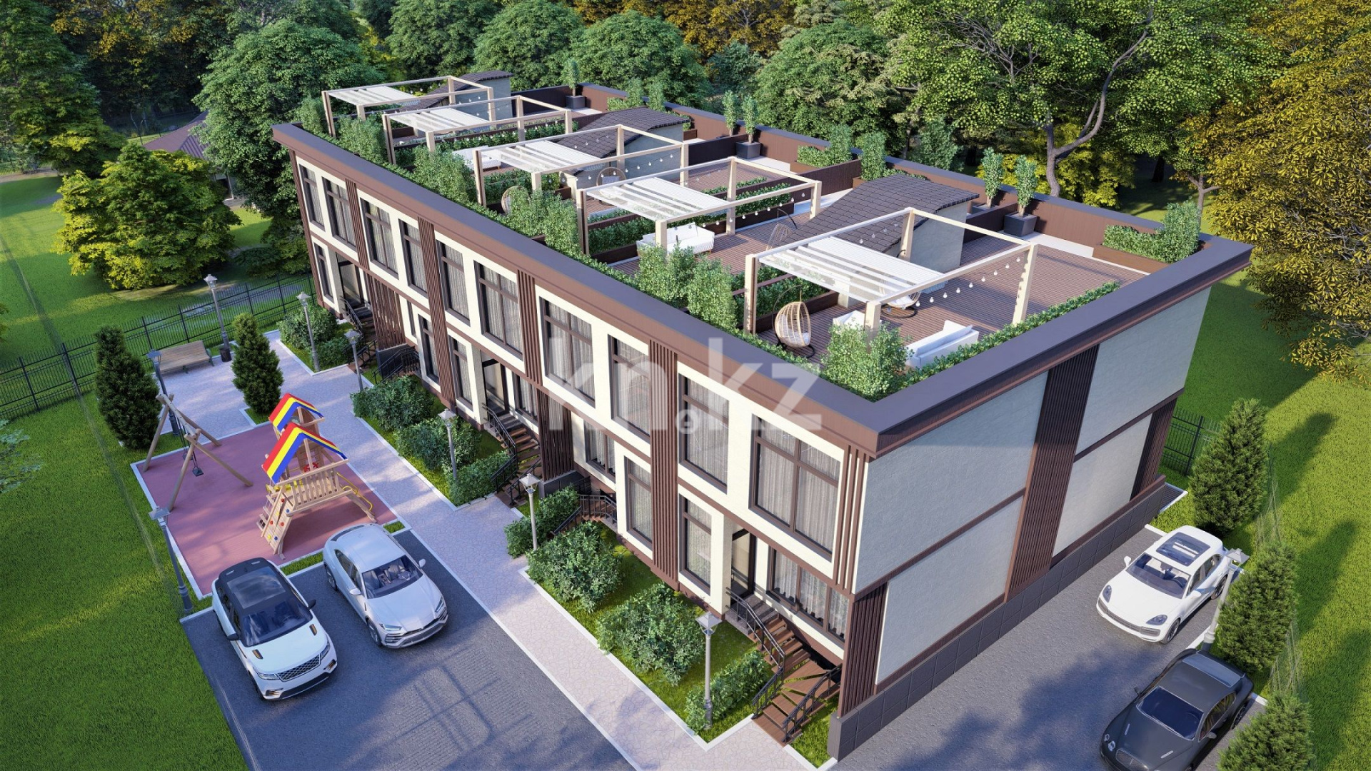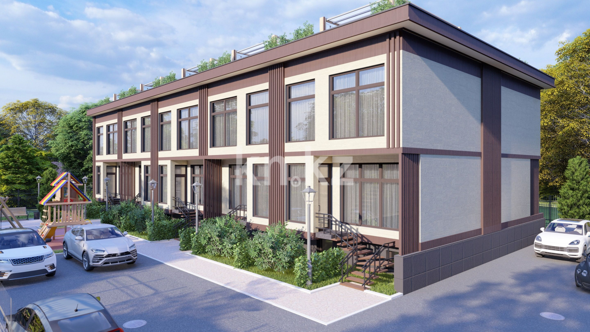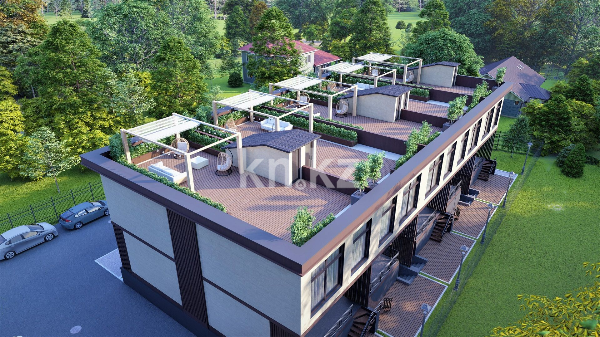 «Merey Terrace» - это жилой комплекс из 5 двухэтажных таунхаусов. У каждого таунхауса, помимо 2 жилых этажей и цоколя, имеется собственная терраса на крыше и 2 парковочных места. Два дома по краям имеют больший земельный участок.