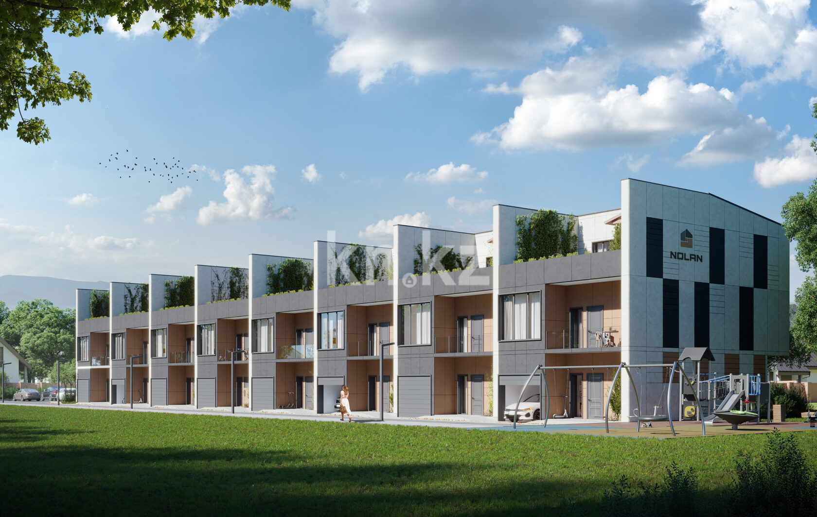 Территория защищена 3 м оградой, установлены камеры видеонаблюдения и дистанционное управление въездными воротами. На территории Nolan расположена игровая площадка и зона workout.