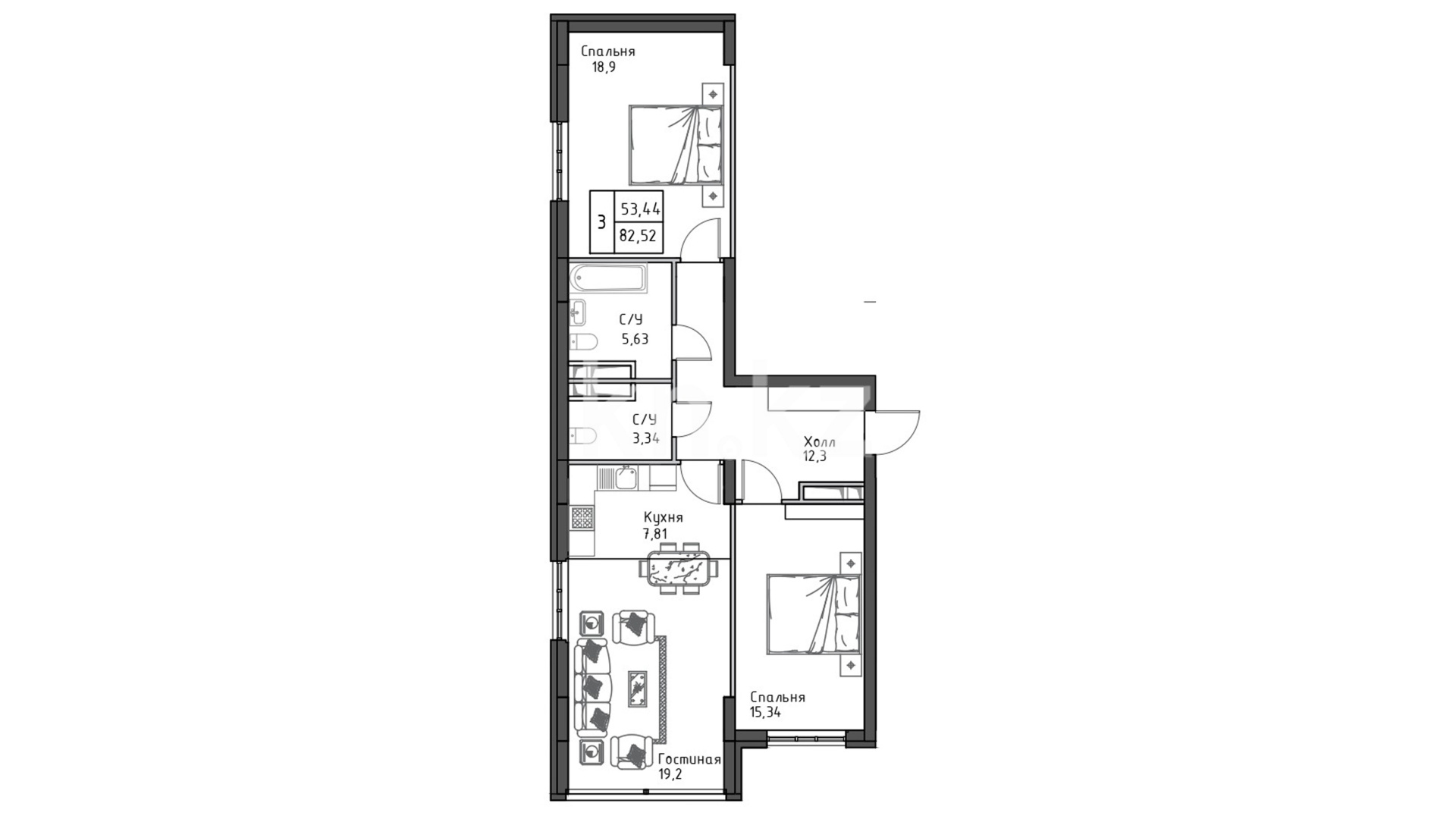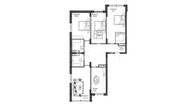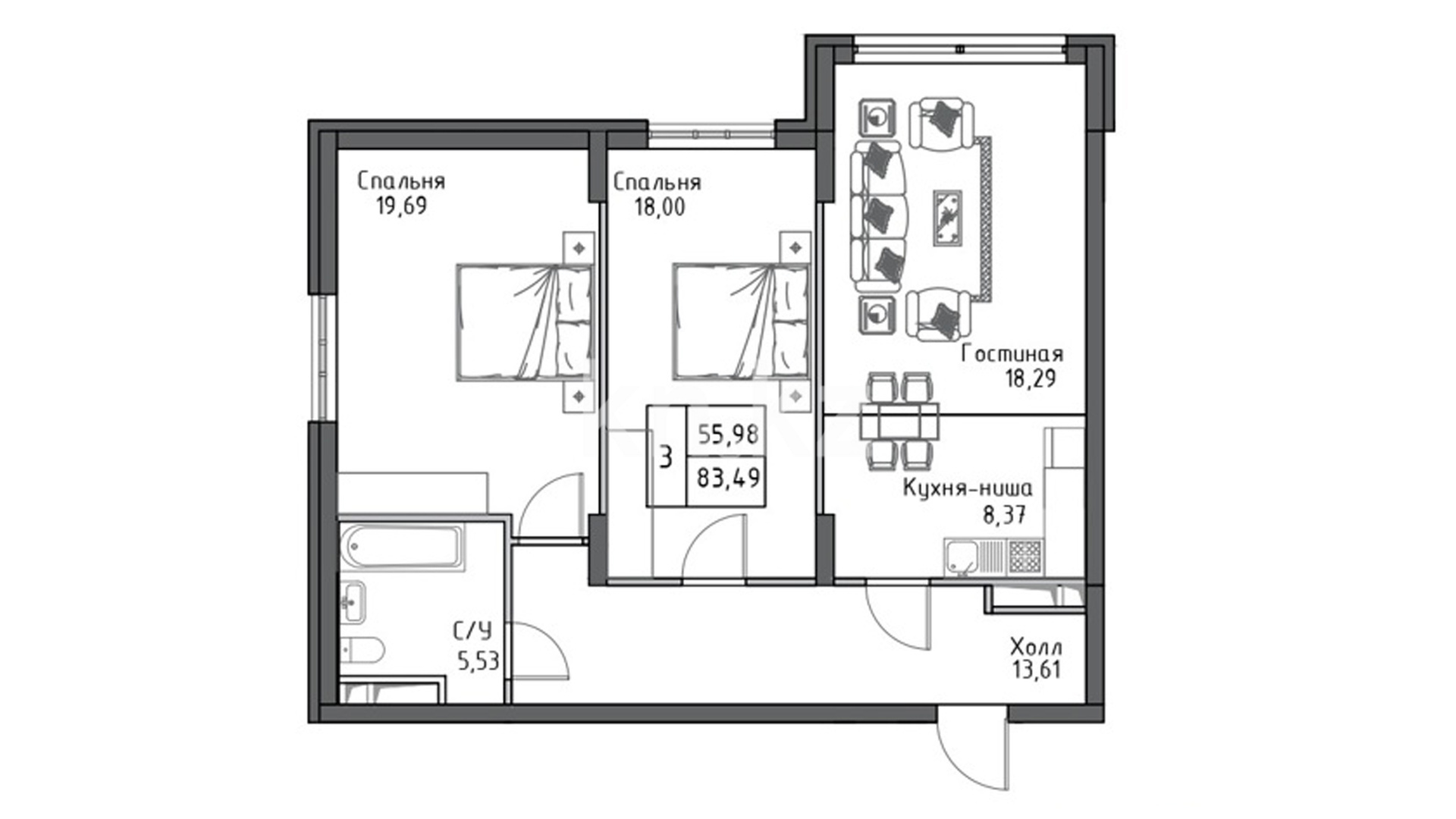 В комплексе представлены 1-, 2- и 3-комнатные квартиры площадью от 55 до 83 кв. метров. Система «Умный дом» в каждой квартире. Имеется просторная терраса на крыше.
