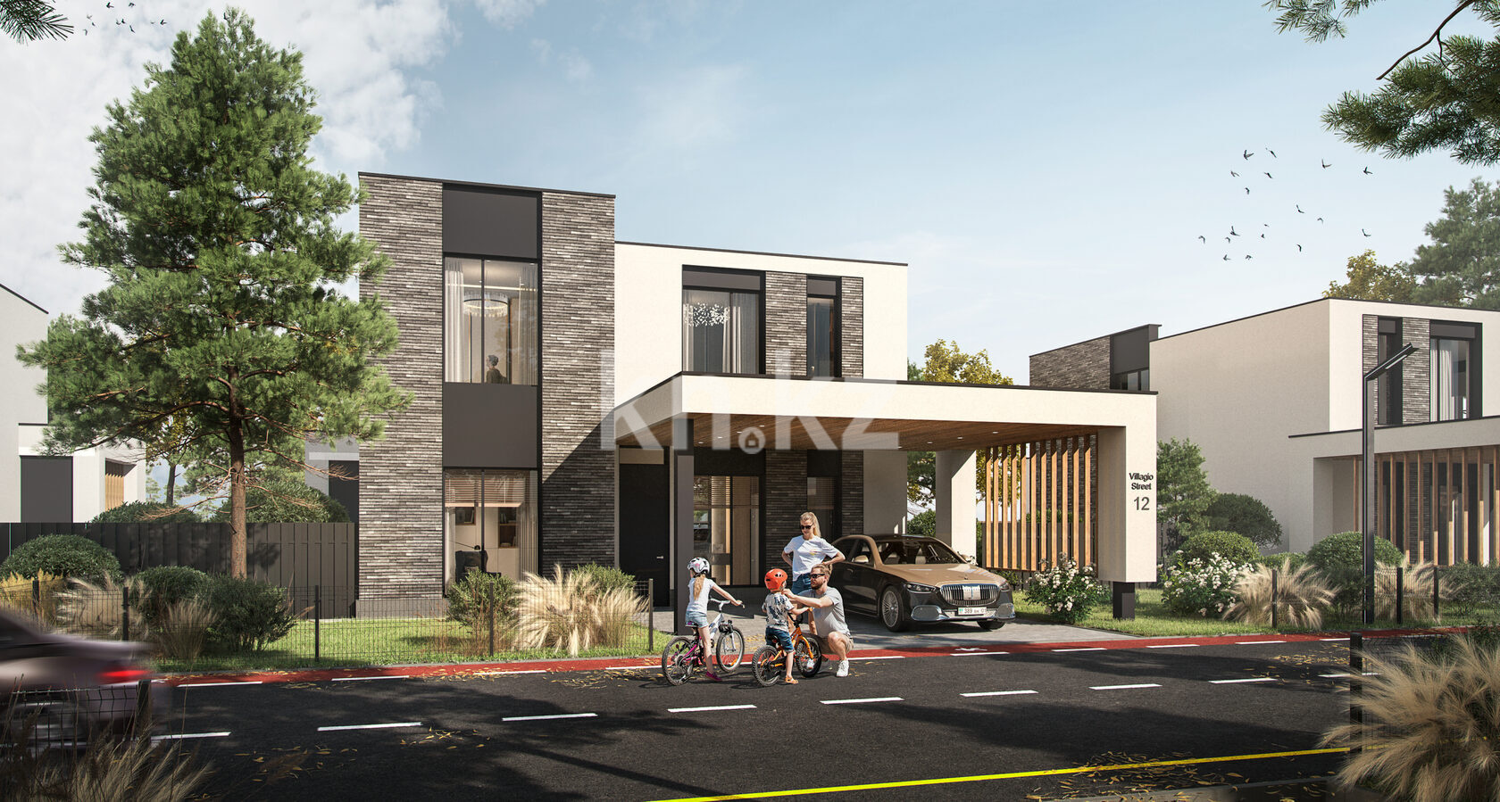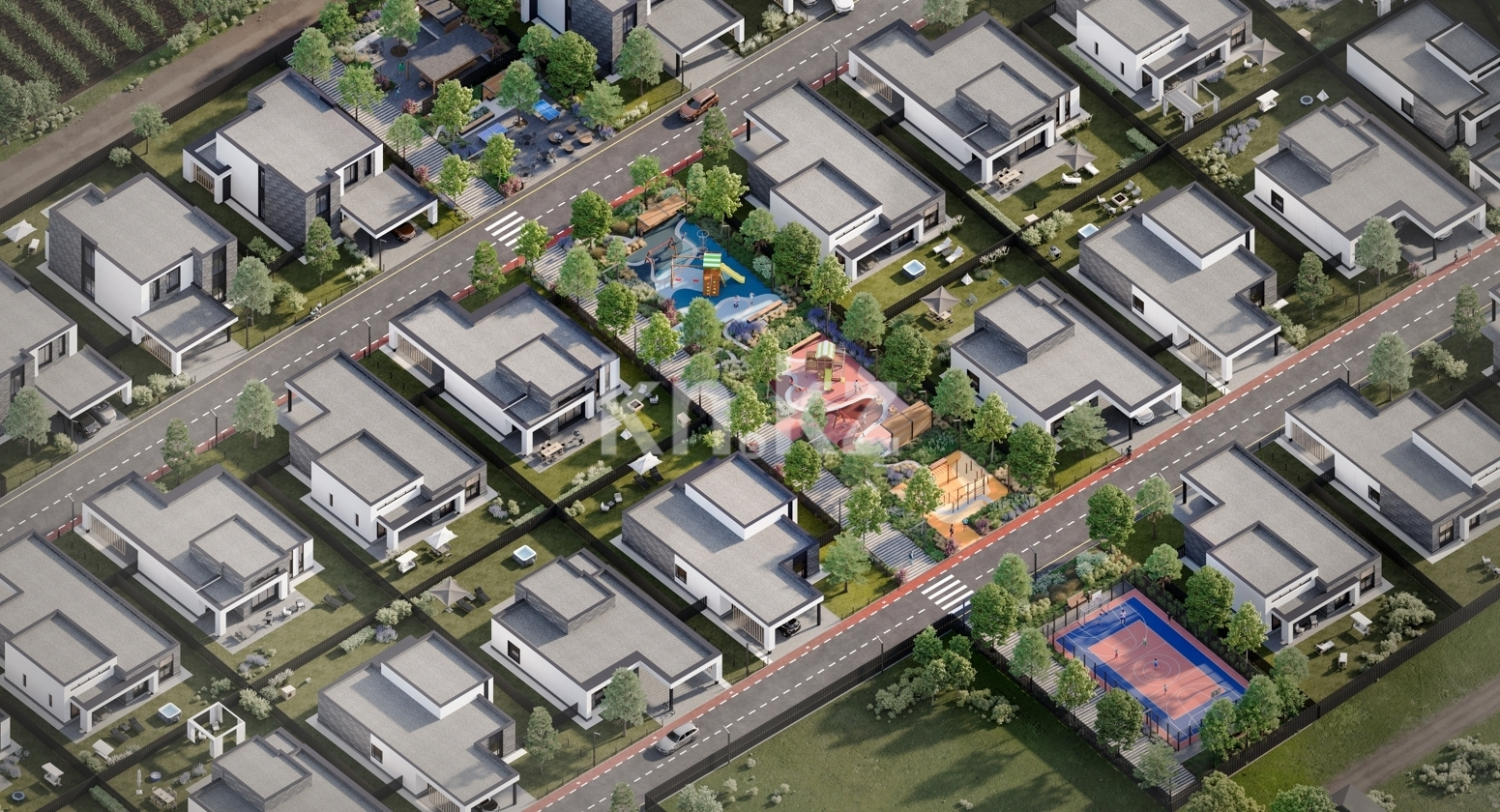 Комплекс включает 32 современные виллы с элегантной архитектурой, подчеркнутой четкими линиями и формами. Для фасадной отделки используется изысканный европейский кирпич под камень, который придает домам утонченность и долговечность. Большие металлопластиковые окна наполняют помещения естественным светом, а входные двери с антивандальной системой обеспечивают безопасность. Каждая вилла подключается ко всем необходимым коммуникациям, включая индивидуальное газовое отопление, что гарантирует комфорт в любое время года.