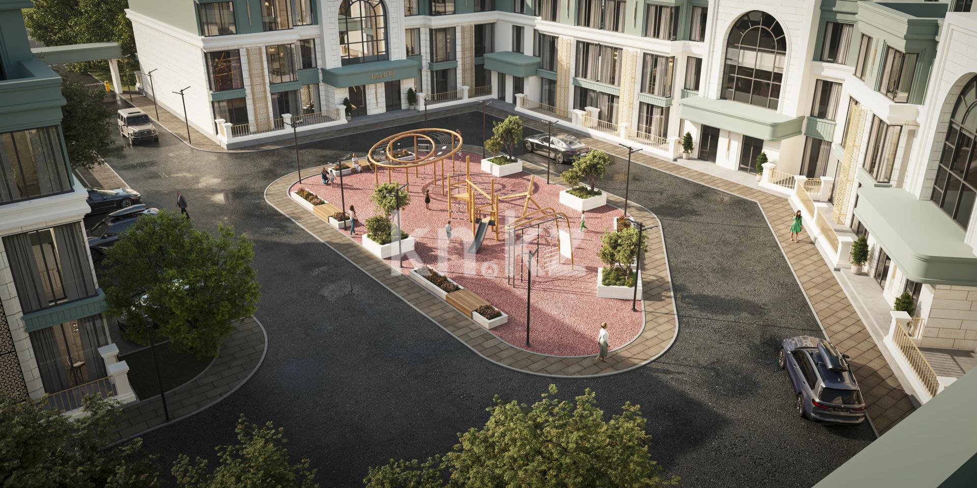 Изящные прогулочные зоны с зелеными насаждениями и скамейками дарят умиротворение и спокойствие.