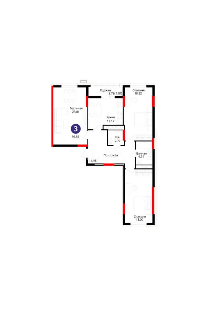 Высота потолков: 3 м