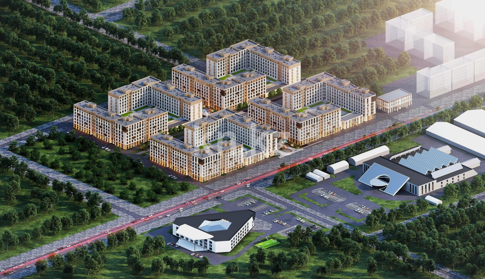 Aq Shatyr – это современный жилой квартал, расположенный в перспективном и активно развивающемся районе столицы, вдоль проспекта Туран.