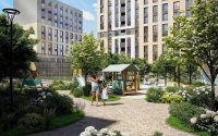 Особое внимание уделено благоустройству территории. Двор, расположенный на уровне первого этажа, создает приватное и безопасное пространство для жителей. Здесь предусмотрены озелененные зоны отдыха, прогулочные аллеи, современные детские игровые площадки и спортивные зоны. Такая среда идеально подходит как для активного досуга, так и для спокойного отдыха всей семьей.