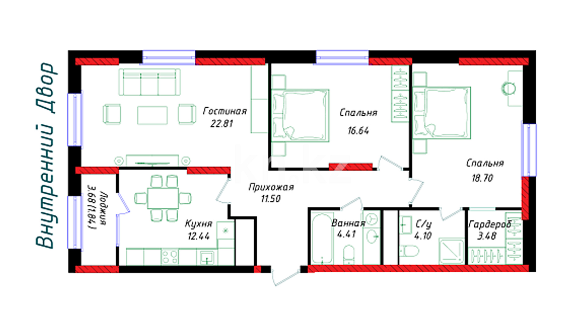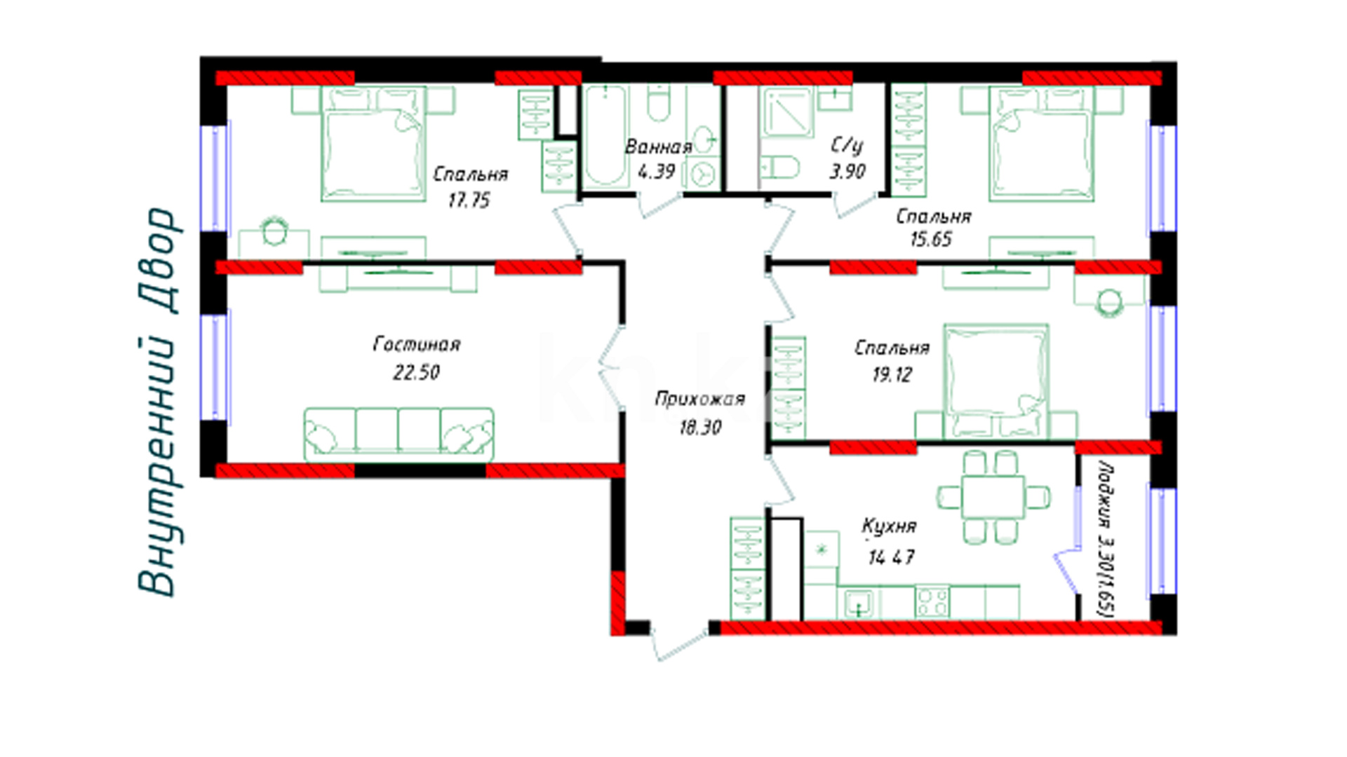 Высота потолков: 3 м