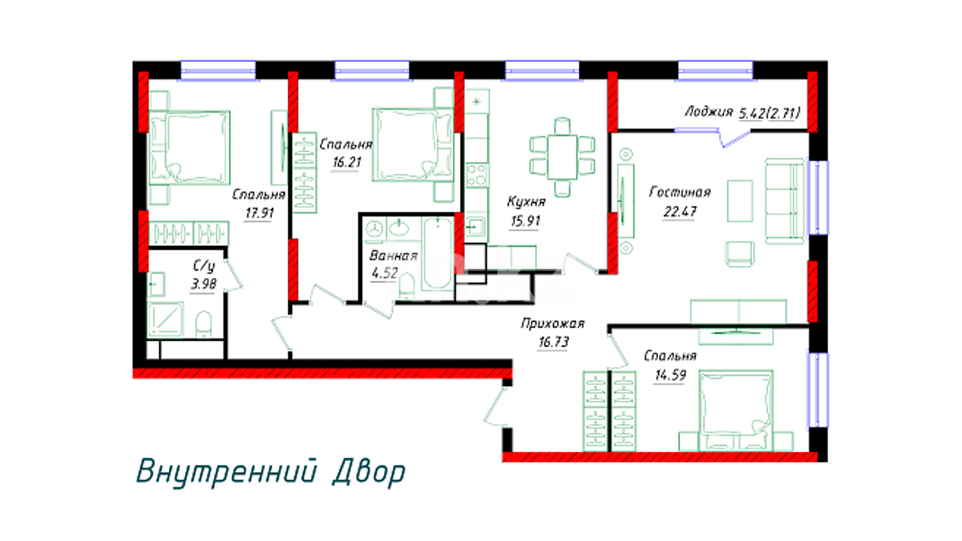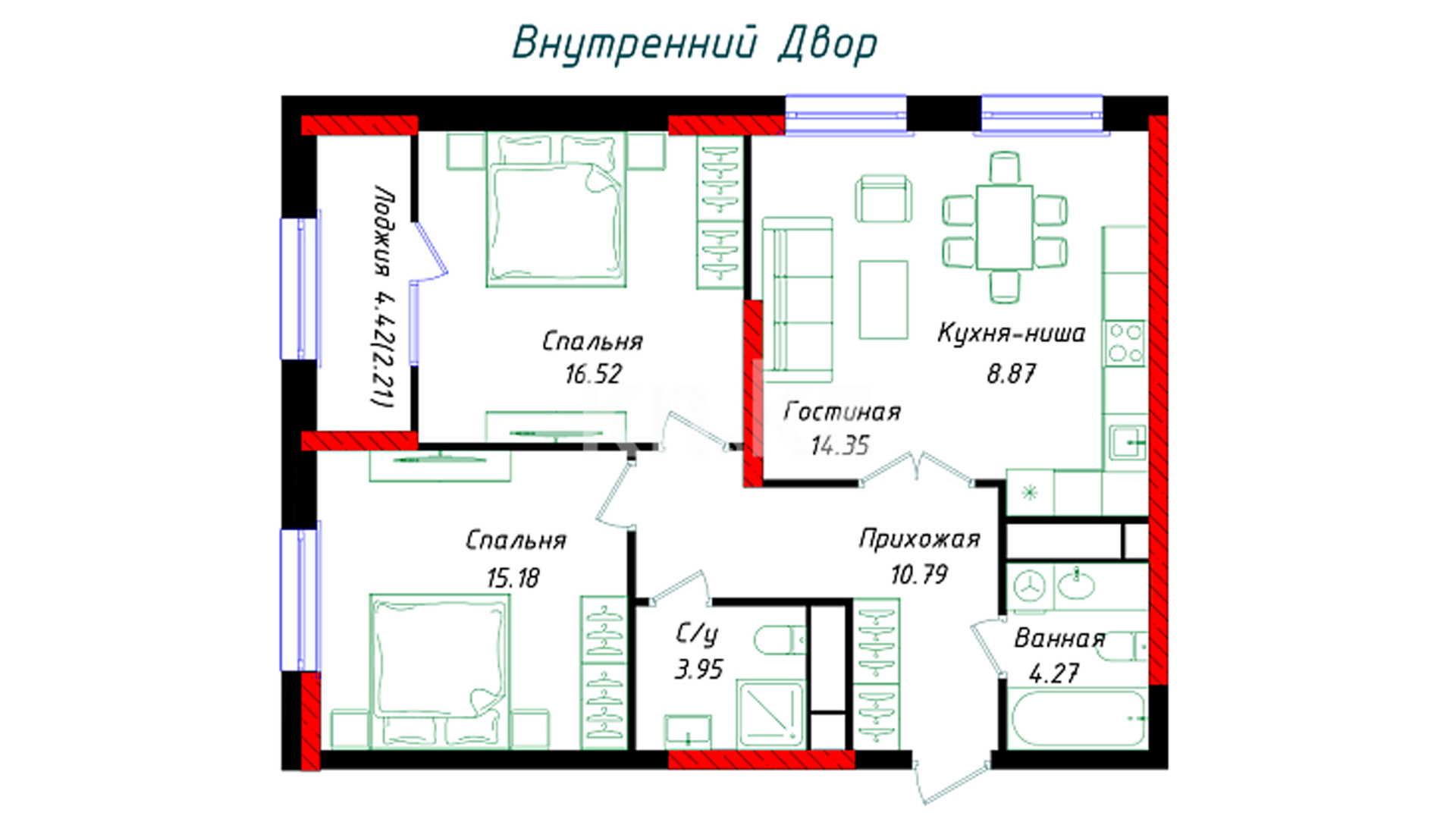 •  двор расположен на уровне второго этажа, что обеспечивает дополнительную безопасность и приватность;