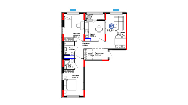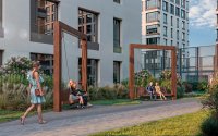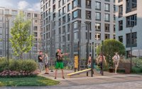• Спортивная инфраструктура – во дворе предусмотрены площадка workout с турниками и тренажерами для занятий на свежем воздухе, а также футбольное поле для командных игр.