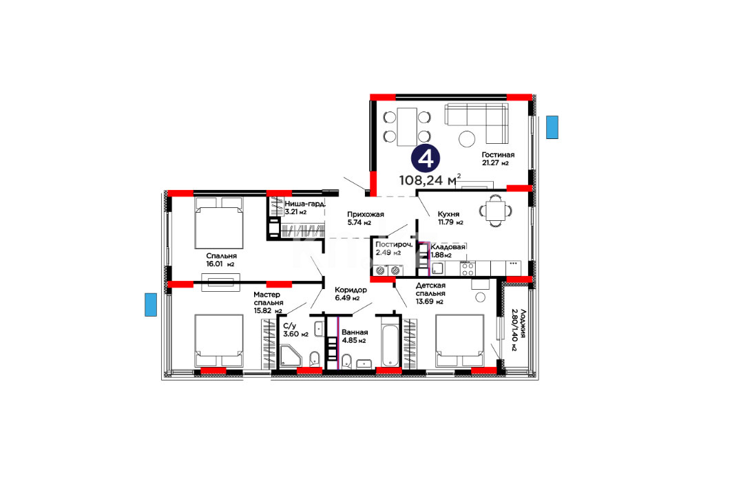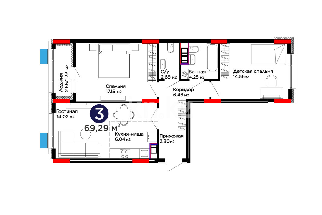 Высота потолков: 3 м