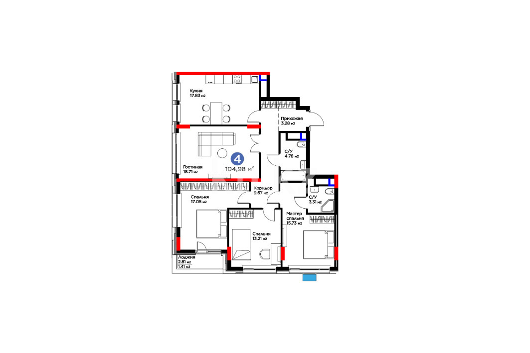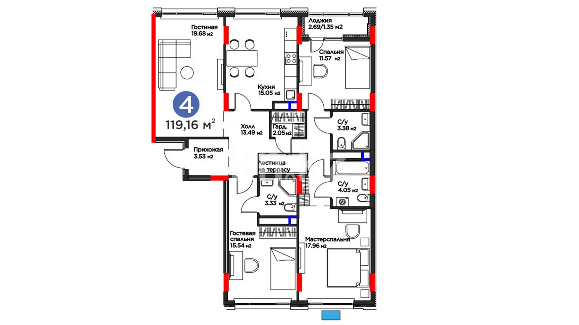 Высота потолков: 3 м