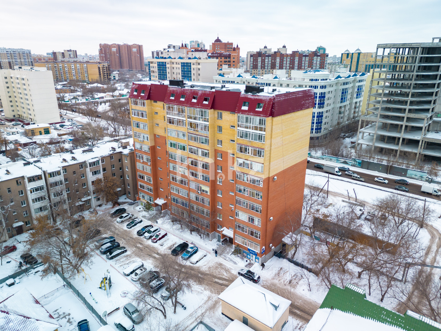 Жилой комплекс «Егемен» представляет собой 10-этажное здание классической прямоугольной формы и расположен в глубине квартала, рядом с пересечением улиц Абая и Сембинова.