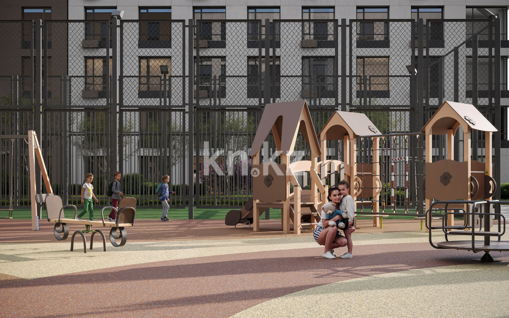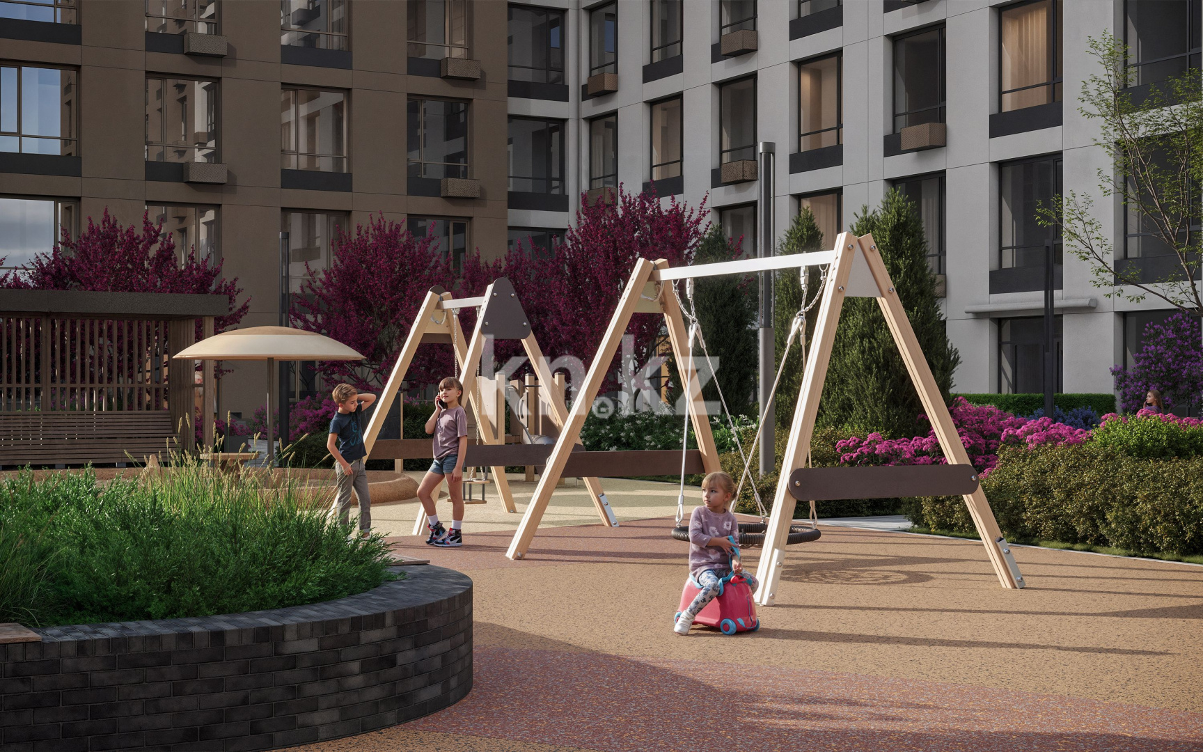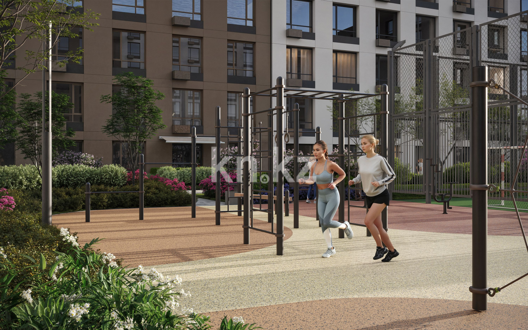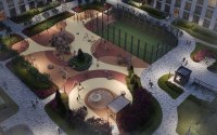 Двор комплекса спроектирован с вниманием к каждому жителю. Безопасное и грамотно организованное пространство позволяет комфортно отдыхать, гулять с детьми и проводить время на свежем воздухе, наслаждаясь спокойной и гармоничной средой.