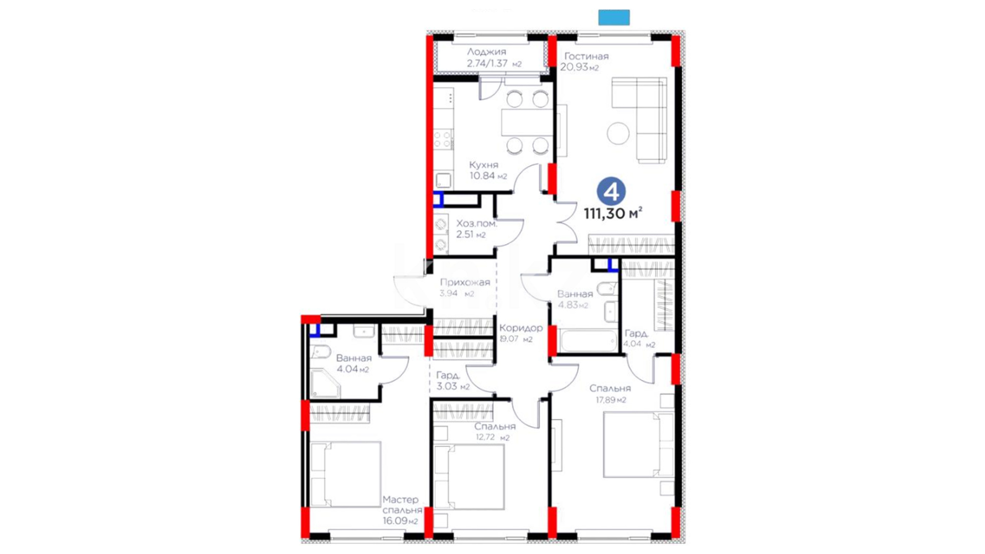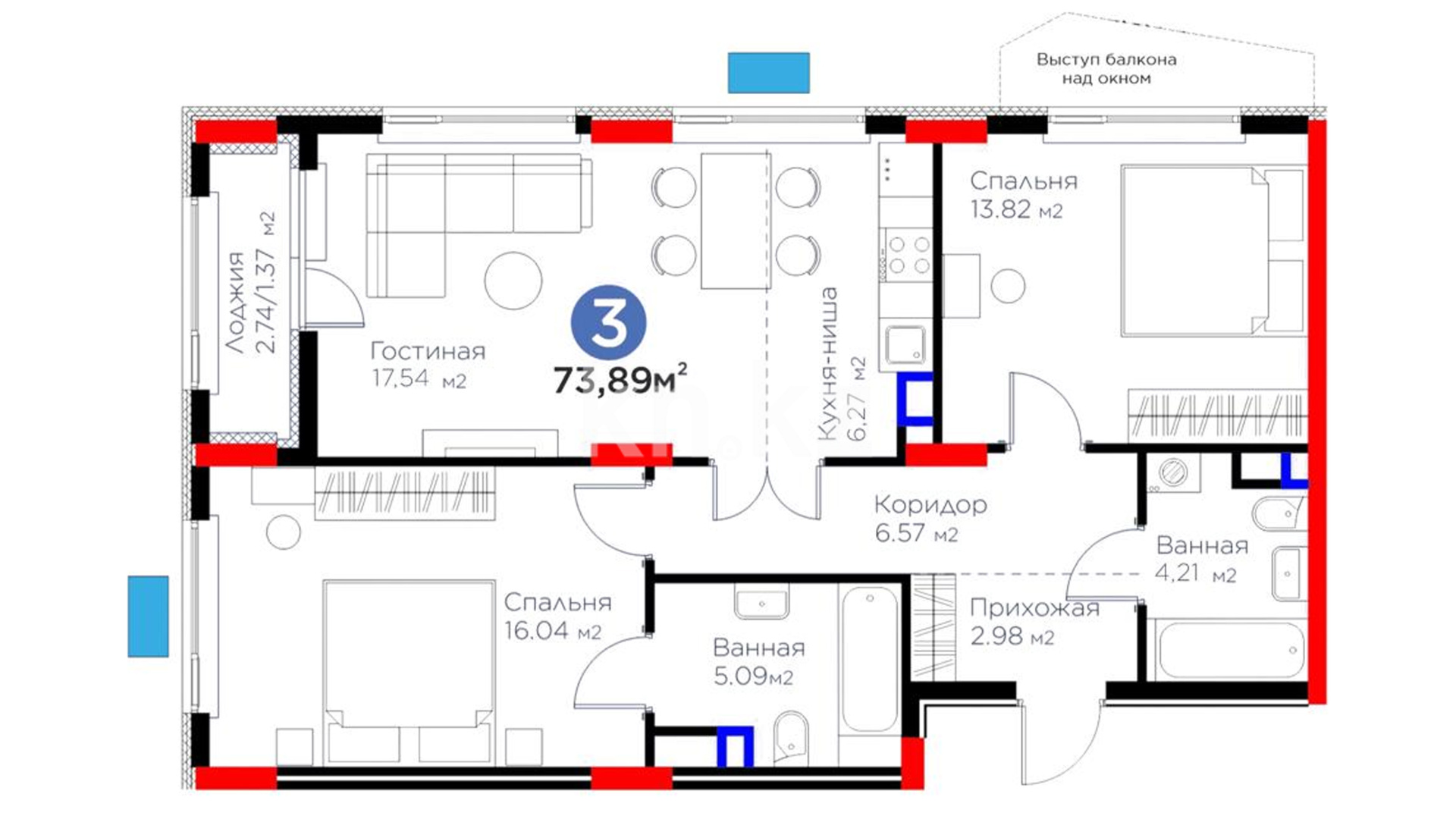 Высота потолков: 3 м