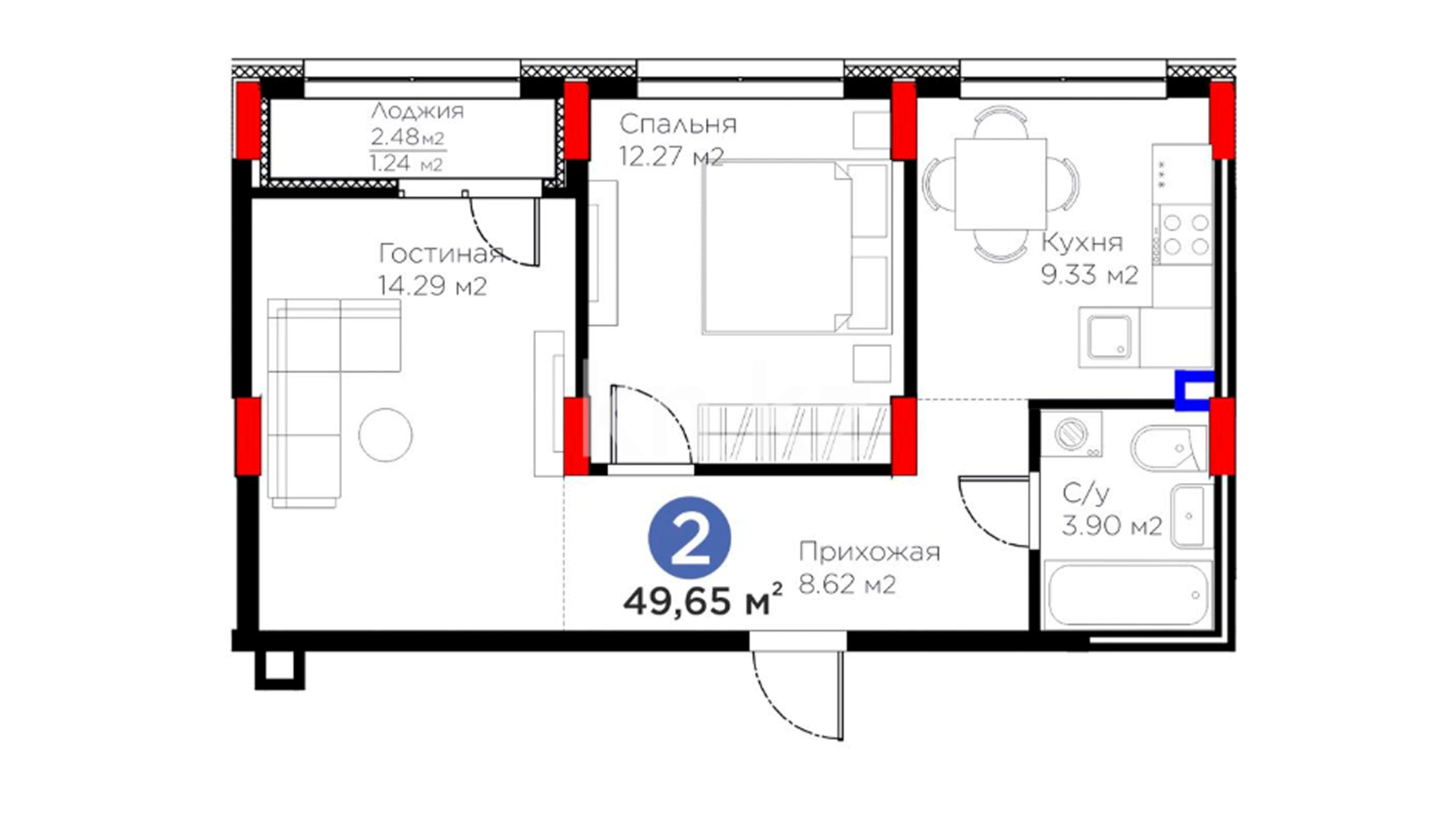 Высота потолков: 2.7 м