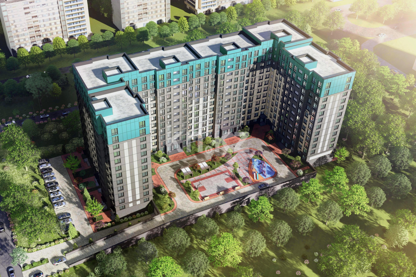 Для машин жильцов предусмотрен паркинг в стилобате, а также с внешней стороны новостройки выделяются места для временной парковки гостевых авто.