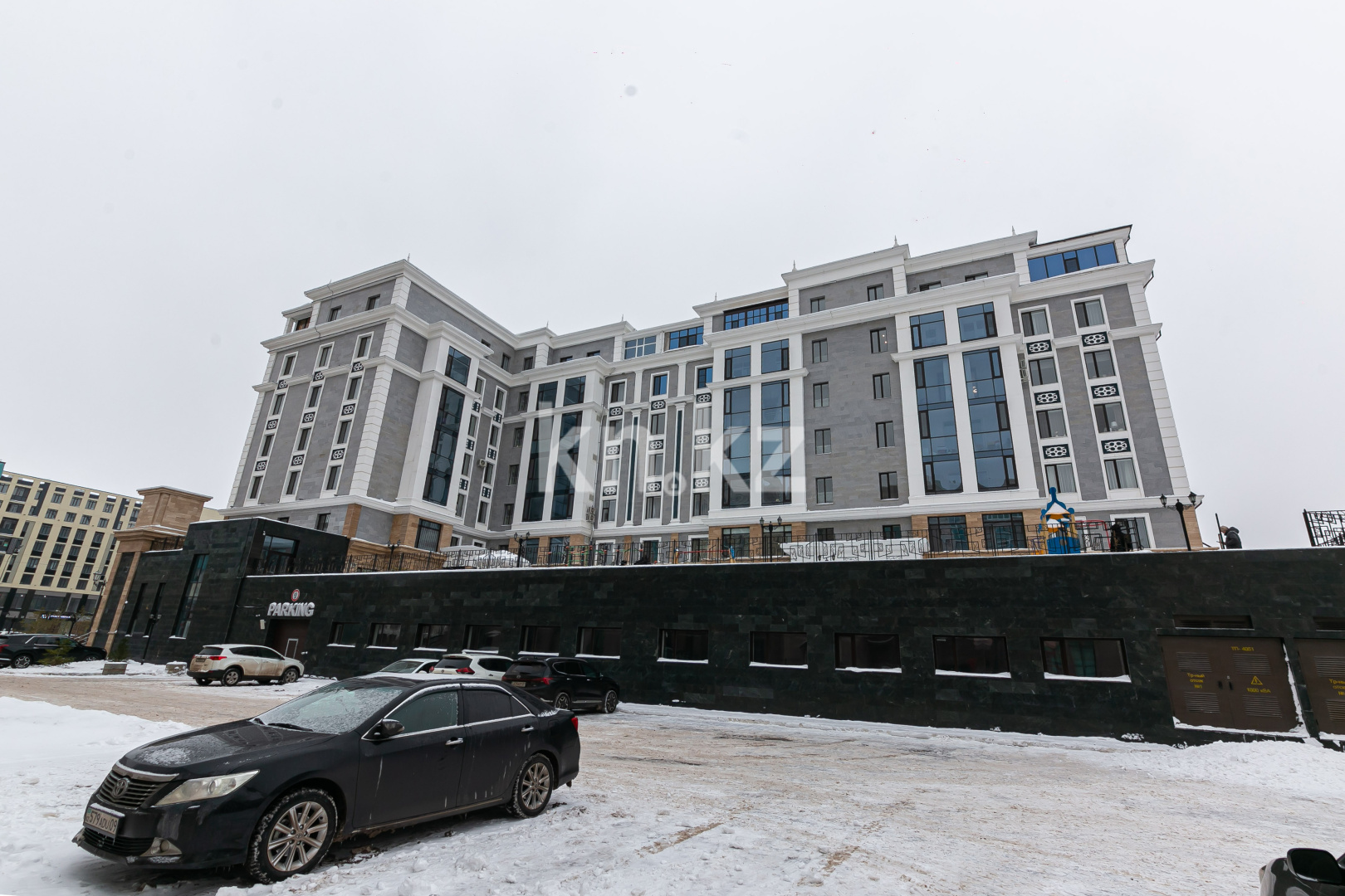 ЖК Mangilik El в Нур-Султане – это здание из двух подъездов, имеющее высоту 7 этажей. Фасады декорированы натуральным камнем – первые два этажа гранитом, а остальные травертином.